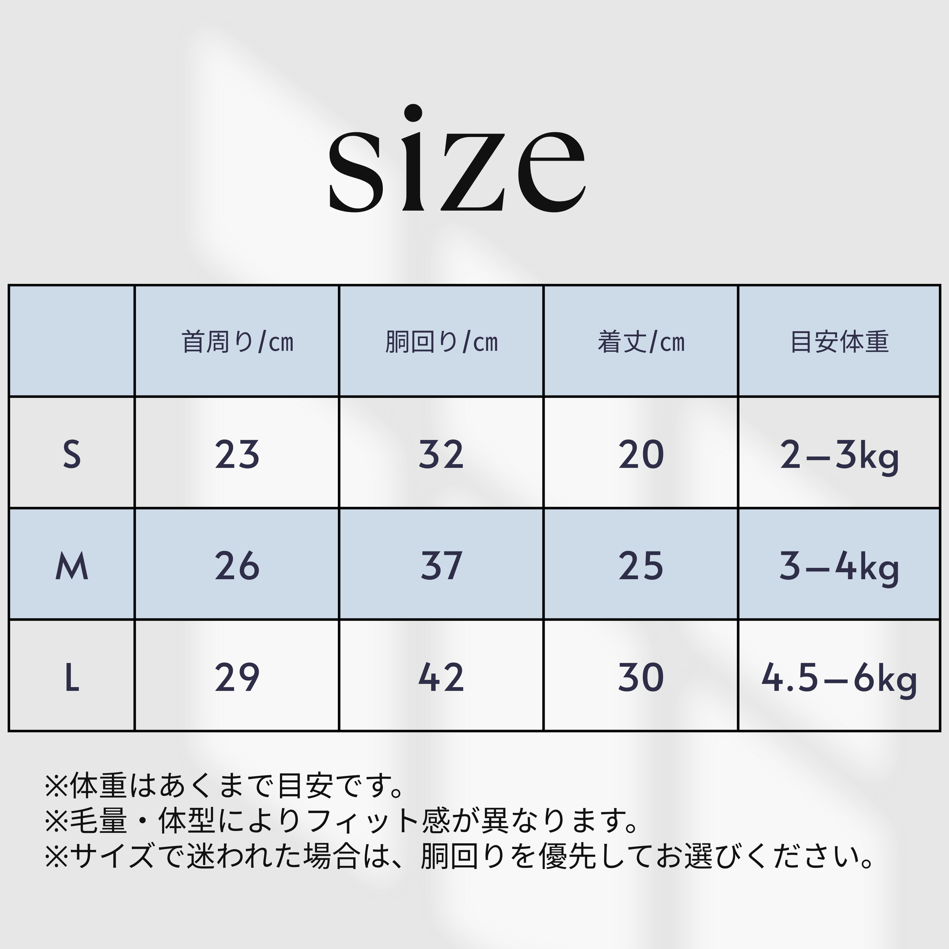 (体重はあくまで目安です)