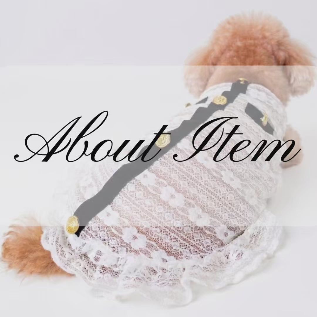繊細なレースと、ゴールドのボタンが可愛い小型犬用ワンピース。