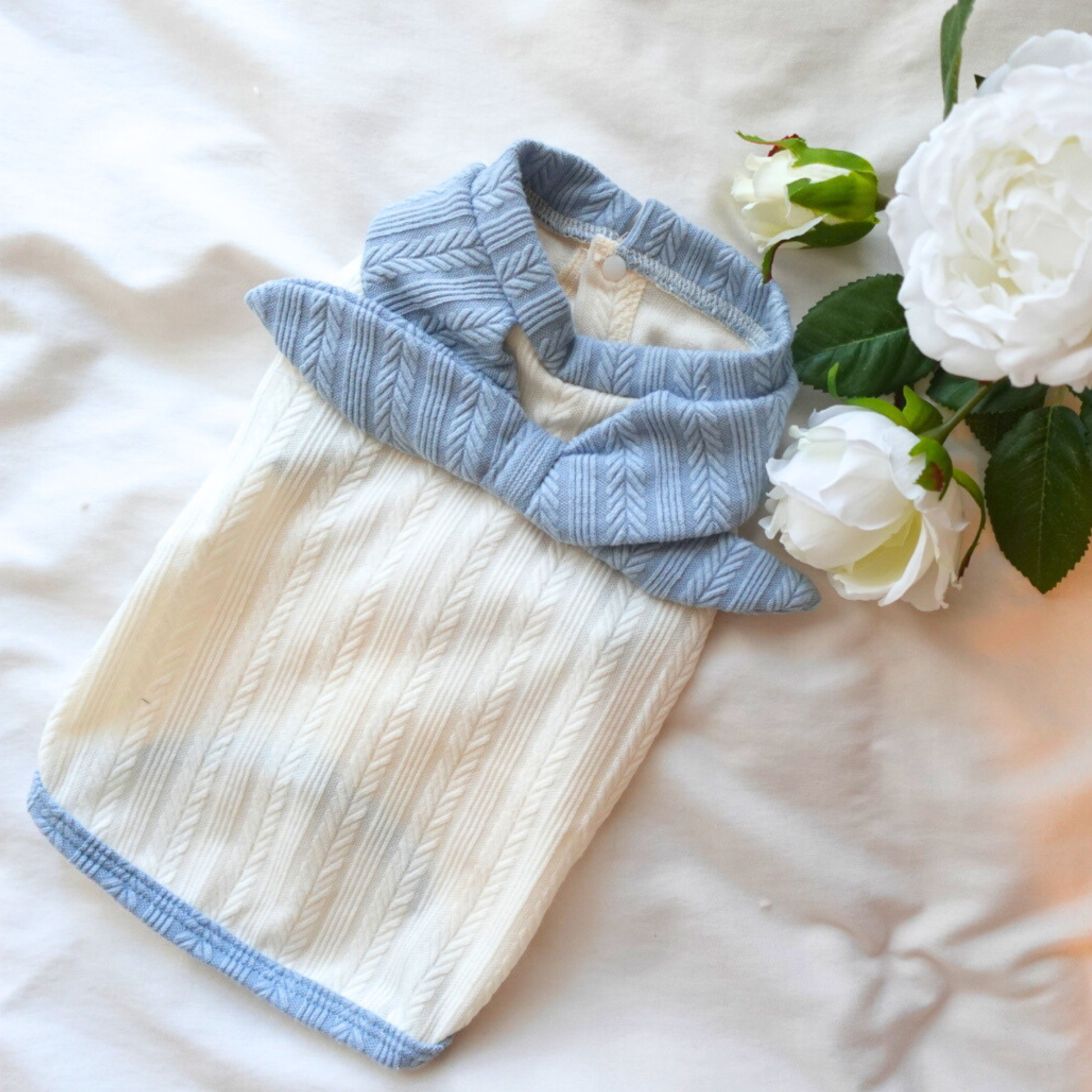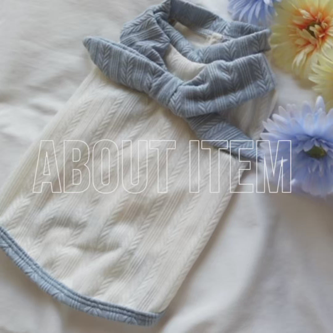 犬服 小型犬|ケーブルニット風トップス ブルーリボン付き ナチュラルデザイン