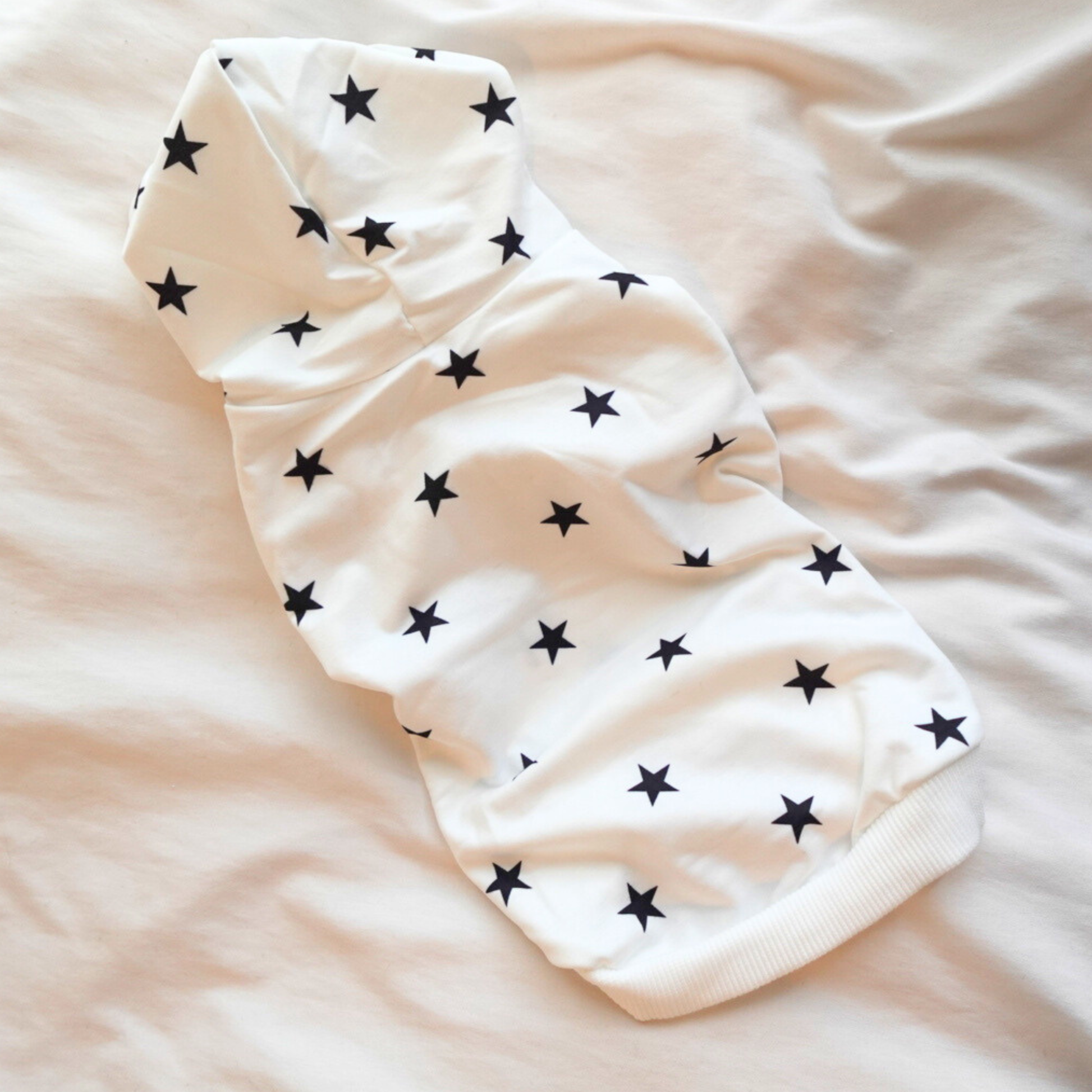 シンプルで着回しやすい、星柄デザインの小型犬用パーカー。